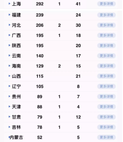 累计收到港澳台地区通报确诊病例53例:香港特别行政区26例(死亡1例),澳门特别行政区10例(治愈出院1例),台湾地区17例(治愈出院1例)。